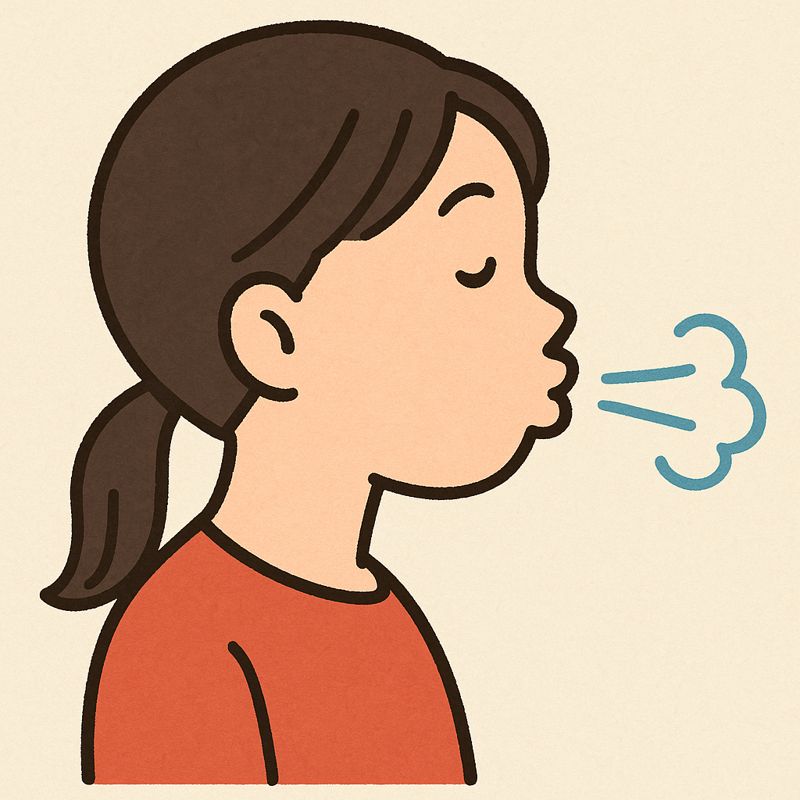(鼻から息を吐きづらい方は口をすぼめて吐くのもお勧めです。