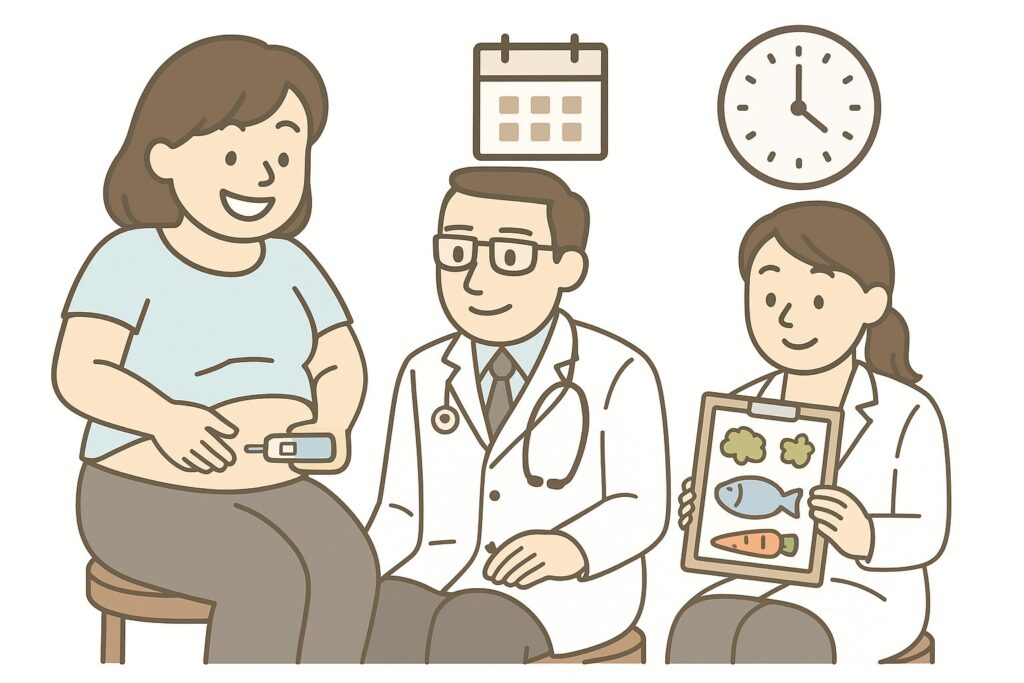 1. 初診:既往歴・採血・体重・HbA1cなどを確認