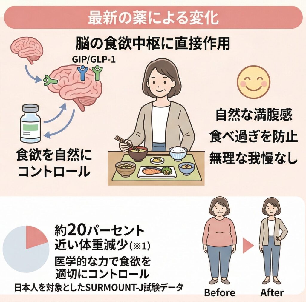 これは、無理な我慢を強いることなく、医学的な力で食欲を適切にコントロールできるようになったことを意味します。